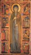 Dieses Tafelbild hängt in der Kirche Santa Chiara in Assis. Es wurde im Jahr 1283 gemalt und ist die erste und somit gleichsam die offizielle bildliche Darstellung der hl. Klara von Assisi, geschaffen etwa 30 Jahre nach ihrem Tod. |